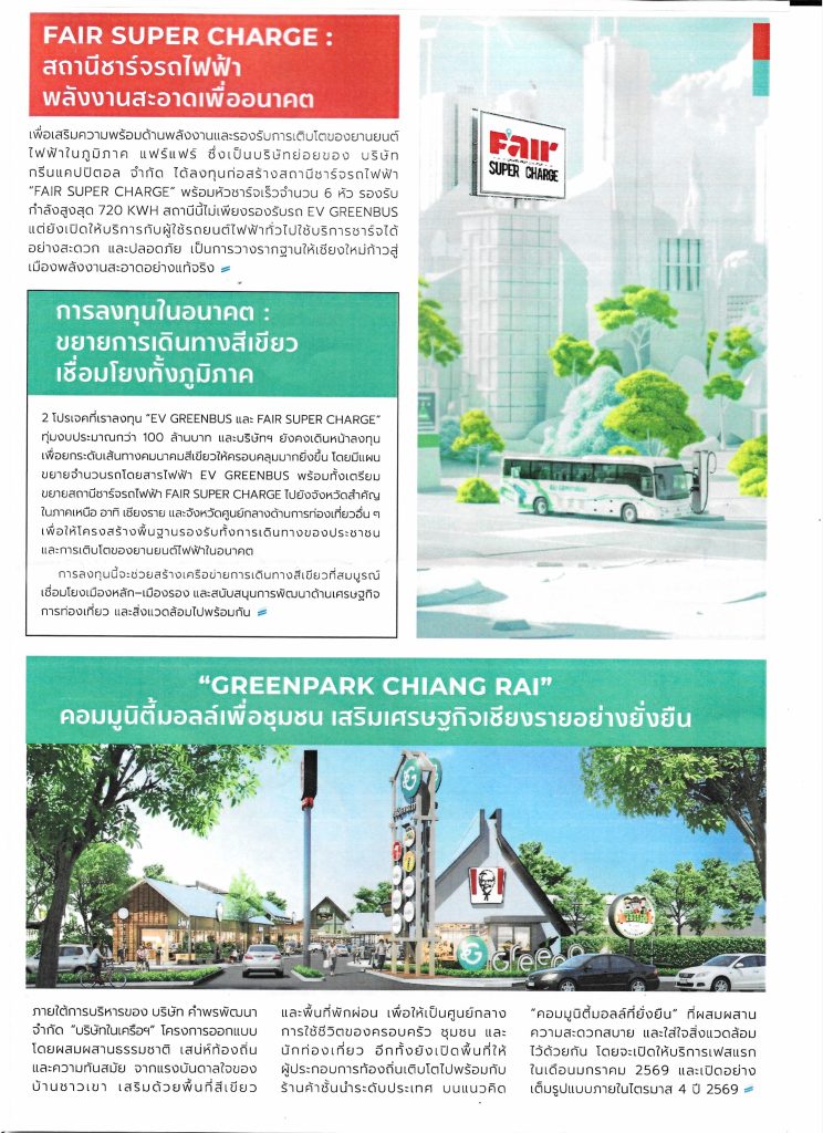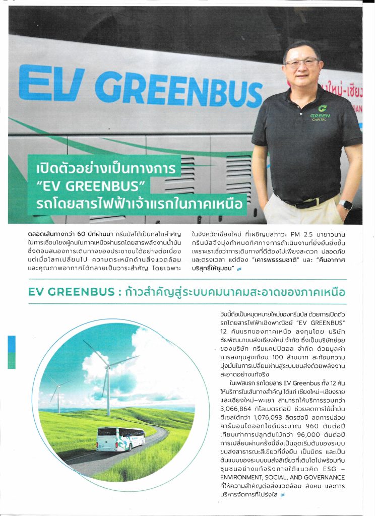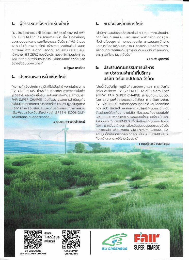 นายธนบดี ภู่สมบุญ รองประธานชมรมธนาคารจังหวัดเชียงใหม่ เป็นผู้แทนในนามประธานชมรมธนาคารจังหวัดเชียงใหม่ เข้าร่วมงานแถลงข่าวเปิดตัวรถโดยสารไฟฟ้า “EV Greenbus” และสถานีชาร์ทรถไฟฟ้า “Fair Super Charge” ภายใต้แนวคิด “A New Journey Toward Sustainability” เส้นทางเชียงใหม่ – เชียงราย, เชียงใหม่ – พะเยา จัดโดยบริษัท ชัยพัฒนาขนส่งเชียงใหม่ จำกัด (กรีนบัส) เพื่อส่งเสริมการใช้พลังงานสะอาด ลดมลพิษทางการ PM2.5 เพื่อรองรับการเติบโตยานยนต์ไฟฟ้าในอนาคต เมื่อวันศุกร์ที่ 28 พฤศจิกายน 2568 เวลา 8.30 น. ณ สำนักงานกรีนบัส ถนนเชียงใหม่ – สันทราย