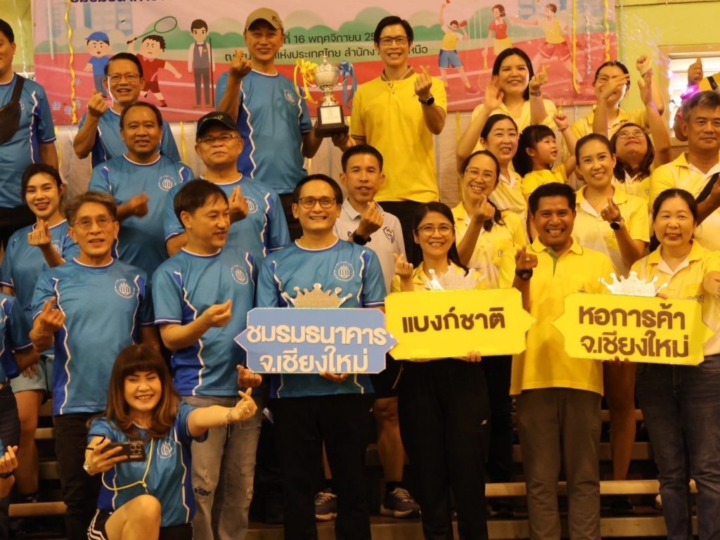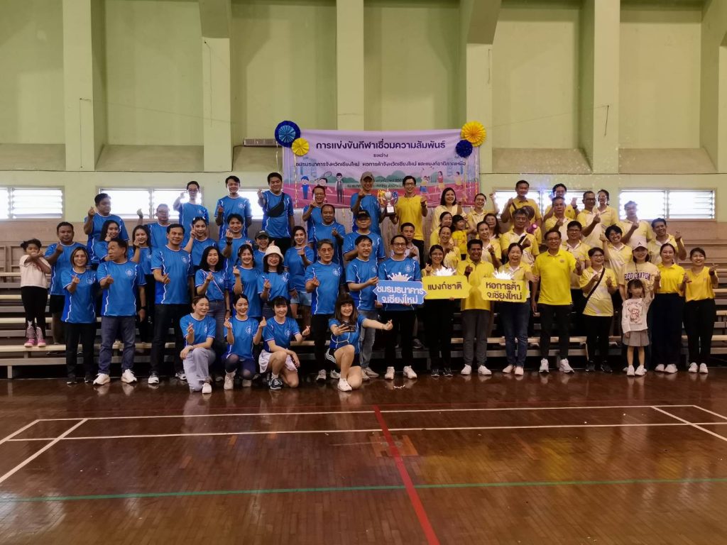 คุณสุรชาติ ภีระคำ ประธานชมรมธนาคารจังหวัดเชียงใหม่ พร้อมด้วยคณะกรรมการ และสมาชิกชมรมธนาคารจังหวัดเชียงใหม่ เข้าร่วมแข่งขันกีฬาเชื่อมสัมพันธ์ชมรมธนาคารจังหวัดเชียงใหม่ หอการค้าจังหวัดเชียงใหม่ และธนาคารแห่งประเทศไทย สำนักงานภาคเหนือ ภายใต้โครงการจัดการแข่งขันกีฬาร่วมกับหน่วยงานพันธมิตรในจังหวัดเชียงใหม่ เพื่อเชื่อมความสามัคคีและสร้างความสัมพันธ์อันดีระหว่างกัน ทั้งนี้ ชมรมธนาคารจังหวัดเชียงใหม่ ได้รับรางวัลชนะเลิศการแข่งขัน เมื่อวันเสาร์ที่ 16 พฤศจิกายน 2567 ณ อาคารกีฬา ธนาคารแห่งประเทศ-ไทย สำนักงานภาคเหนือ